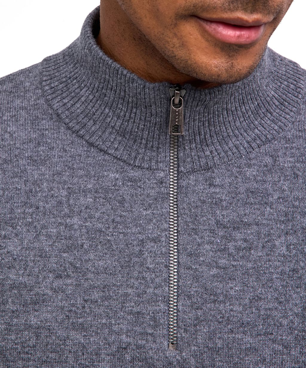 Lambswool classic - this high-quality basic sweater with a zipped stand-up collar is knitted from soft, warming virgin wool. The fine jersey knit is soft and easy to care for. French shoulder seams and a finely ribbed stand-up collar, torso and sleeve cuffs round off the classic look. Whether you wear a T-shirt or a top underneath, this Lambswool sweater is a classic and always looks great in both casual and business styles.