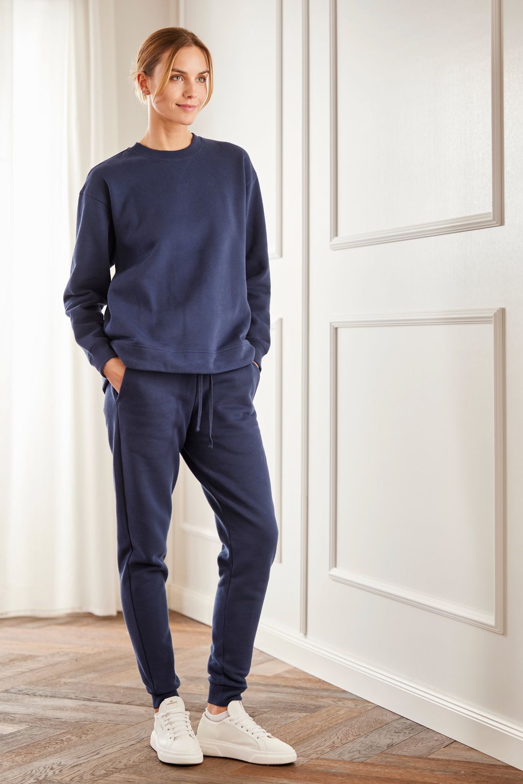 - سويت شيرت عصري بفتحة رقبة دائرية مضلعة وظهر ممدود قليلاً