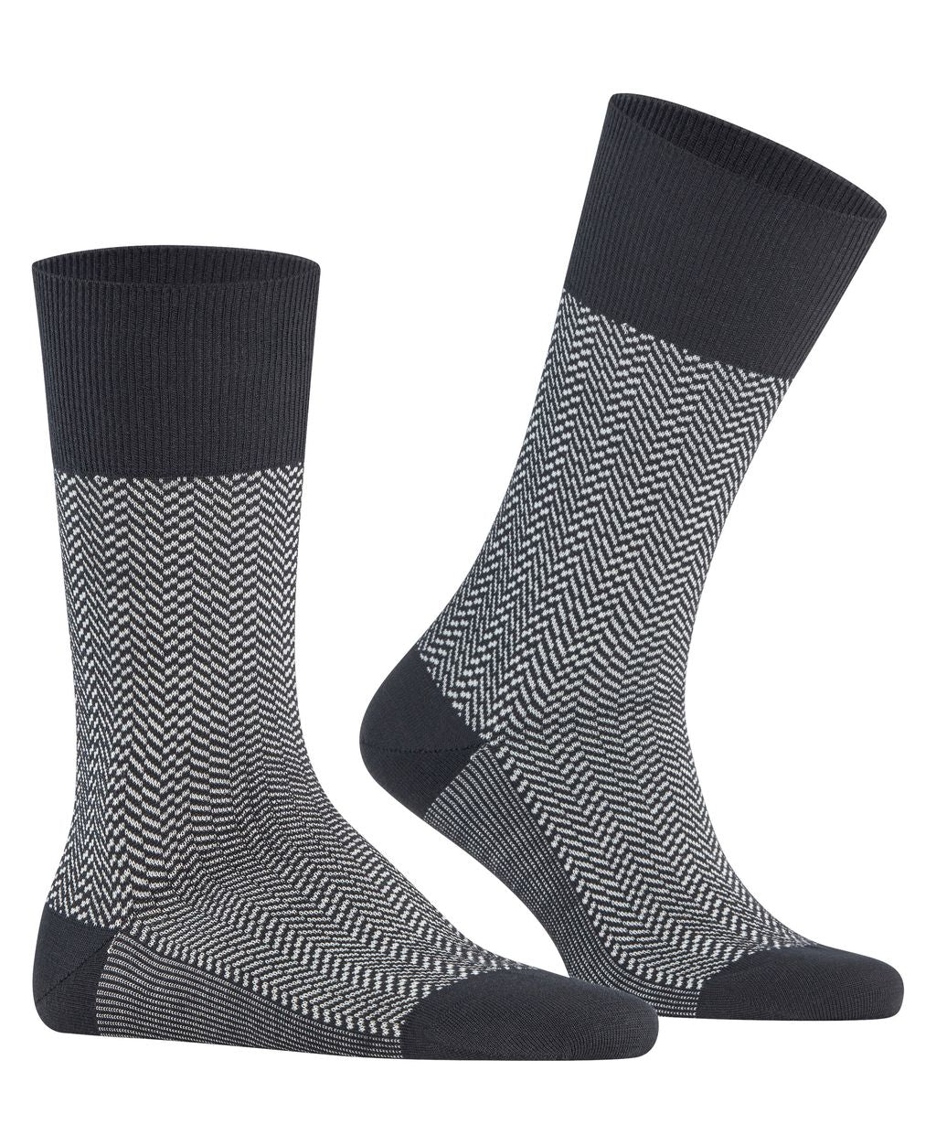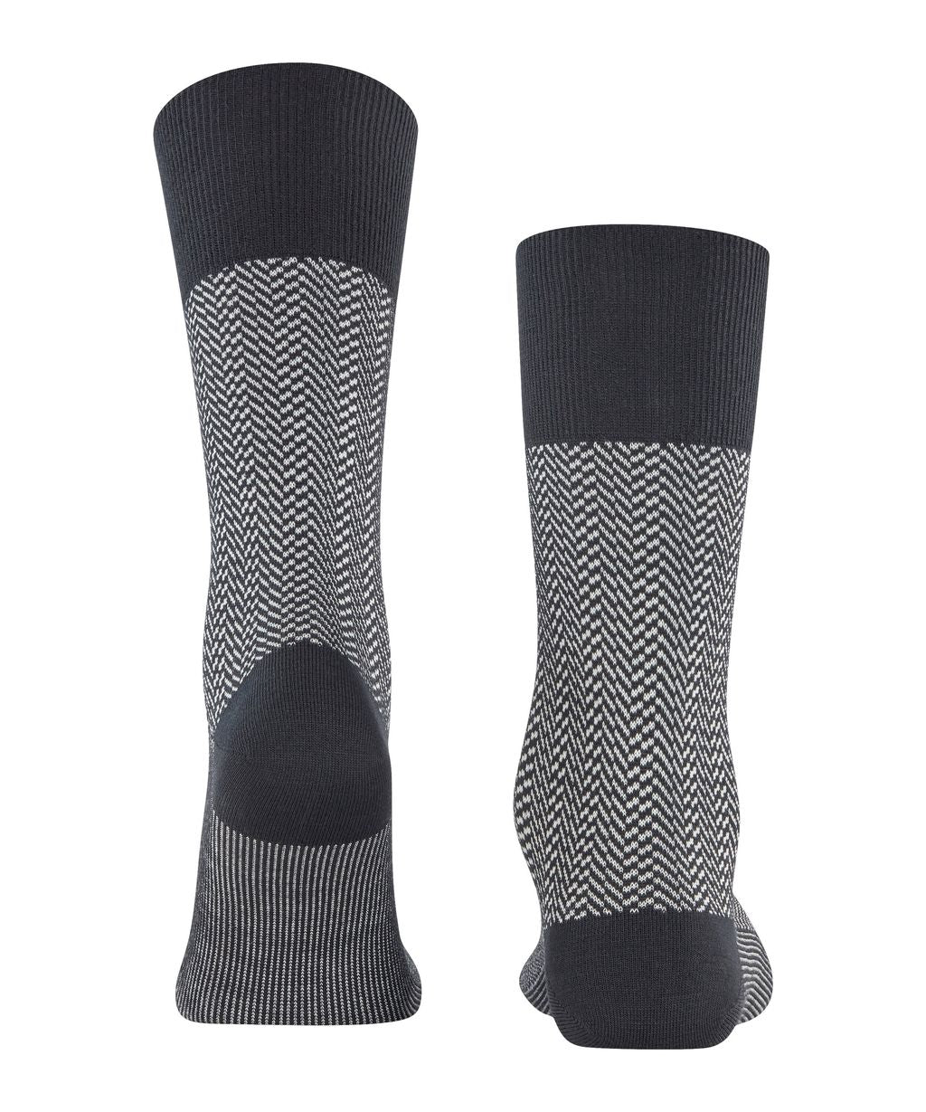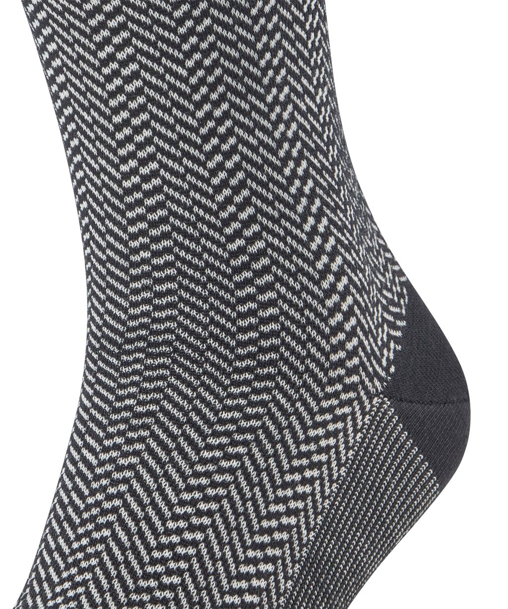 A classic with a new twist: the FALKE Airport Herringstripe not only gets its name from our FALKE Airport fabric, but is also based on the same characteristics. The pleasantly soft cotton on the inside and the climate-regulating merino wool on the outside ensure a unique wearing experience. The reinterpreted, two-tone herringbone pattern sets a modern and stylish accent and gives every outfit a special touch. The extended cuff ensures a wrinkle-free fit on the leg, while reinforced high-strain zones ensure optimal durability. The perfect FALKE fit also guarantees maximum wearing comfort.