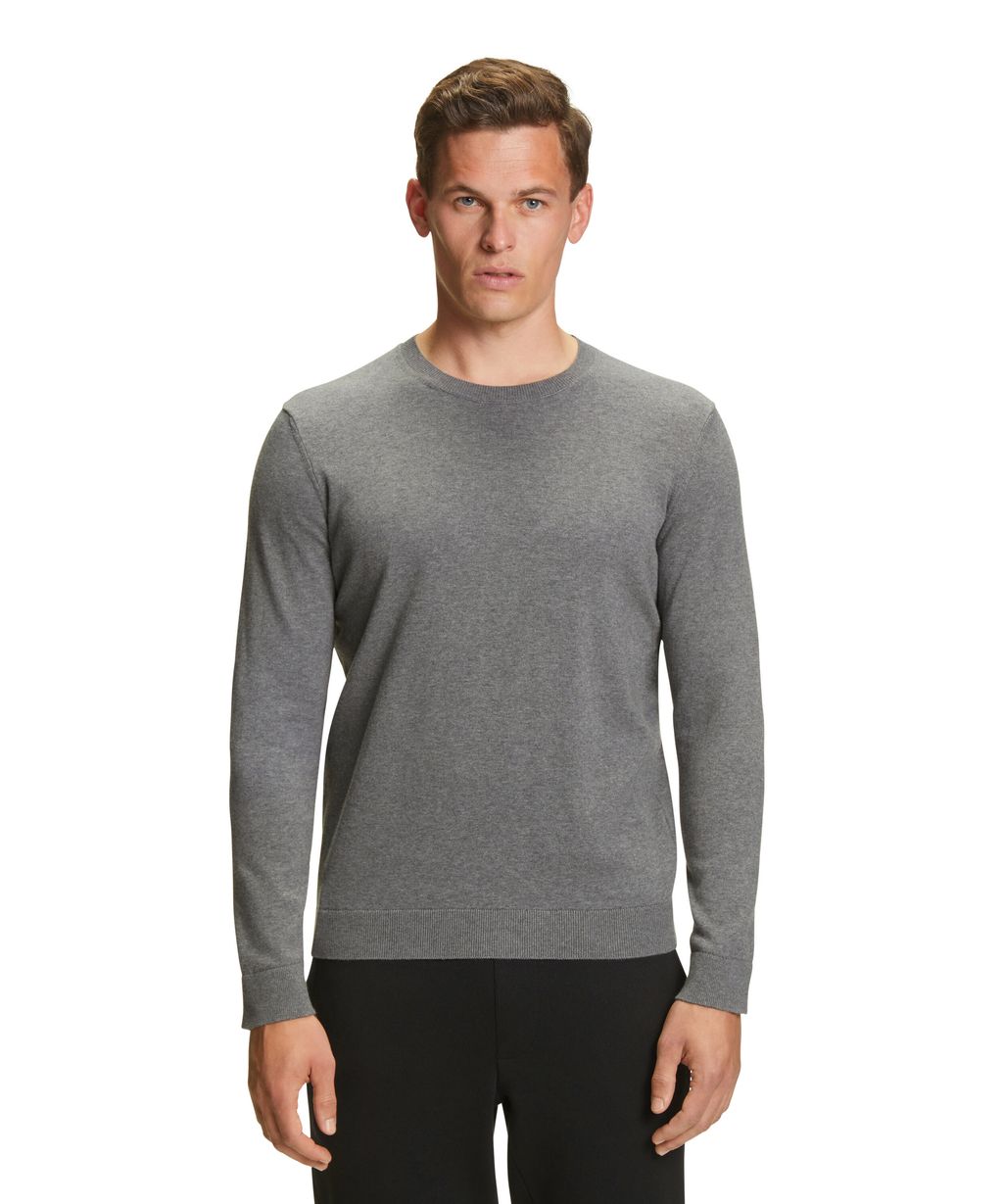The casual-casual sweater with a round neckline is knitted from pure cotton. The fine jersey knit is soft and easy to care for. For an optimum fit, the sweater is finished "fully-fashion". French shoulder seams, as well as a sporty, ribbed neckline and ribbed cuffs make this style an amazing companion for all seasons and any look.